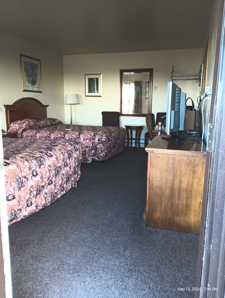 Nice place. Not enough of these independently owned, park at your door places left. Friendly staff at check in. AC had been turned on prior to our arrival to make the room cool, which we thought was very thoughtful. Comfortable beds. Shower was awesome with good pressure and tub drained well. Right off of the interstate with travel oasis nearby containing numerous food options. We enjoyed our stay.